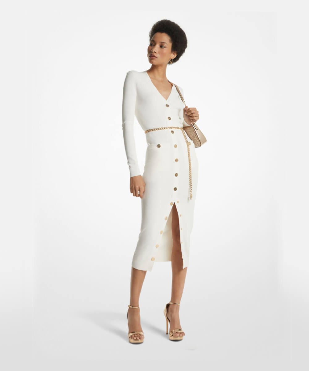 Enchanting Midi White Chambray Dress
